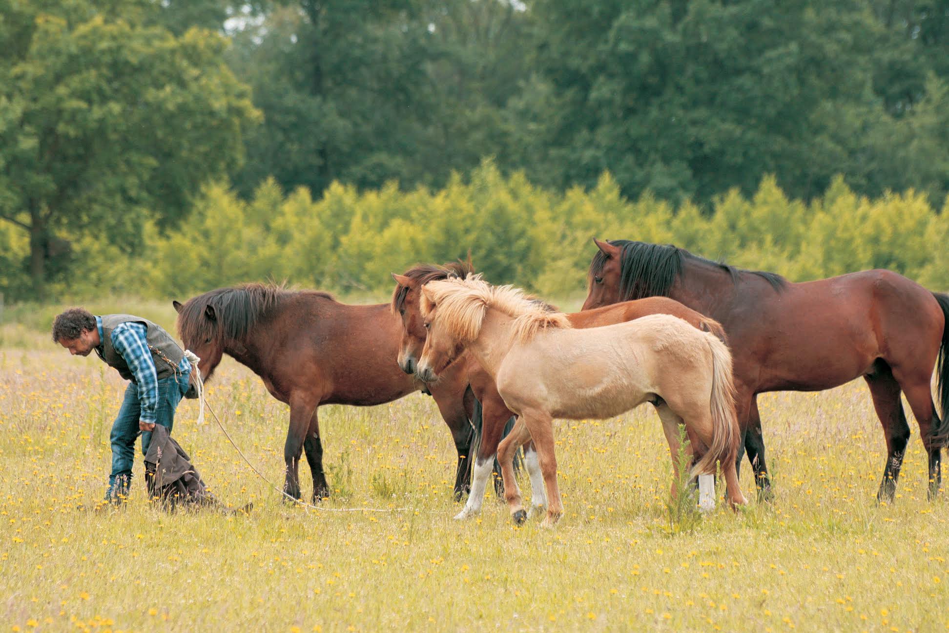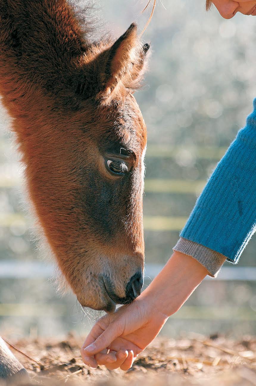 As an example, let’s imagine the situation when we are introducing a foal to the halter. We allow the foal to explore the halter, yet we don’t know if his behavior means he is actually accepting it. People often work in terms of “to do’s,” tasks that need to be achieved. They ask themselves, “Is the foal accepting the halter, or not?” Changing our approach in this situation would be to say, “Hey, he’s smelling the halter; I wonder what he smells?” We will obviously not get an answer to that question, but we will have become aware of the foal’s experience. If we took the time and were curious enough to smell the halter ourselves, we would also get closer to his experience and be able to share the moment with him. But it is very difficult to let go of our own expectations, especially if we are worried the foal might not learn to wear the halter.